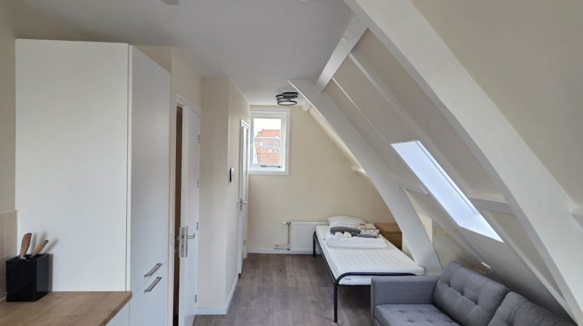 Deze gerenoveerde & gemeubileerde studio’s liggen op de 2e en 3e verdieping, op een korte afstand van alle stadse gemakken en bezienswaardigheden; o.a. het Plantsoen, de winkelstraten Haarlemmerstraat/ Breestraat, supermarkten (Albert Heijn Hooigracht ca. 2 minuten lopen), het Singelpark, diverse musea, restaurants en overige uitgaansgelegenheden.