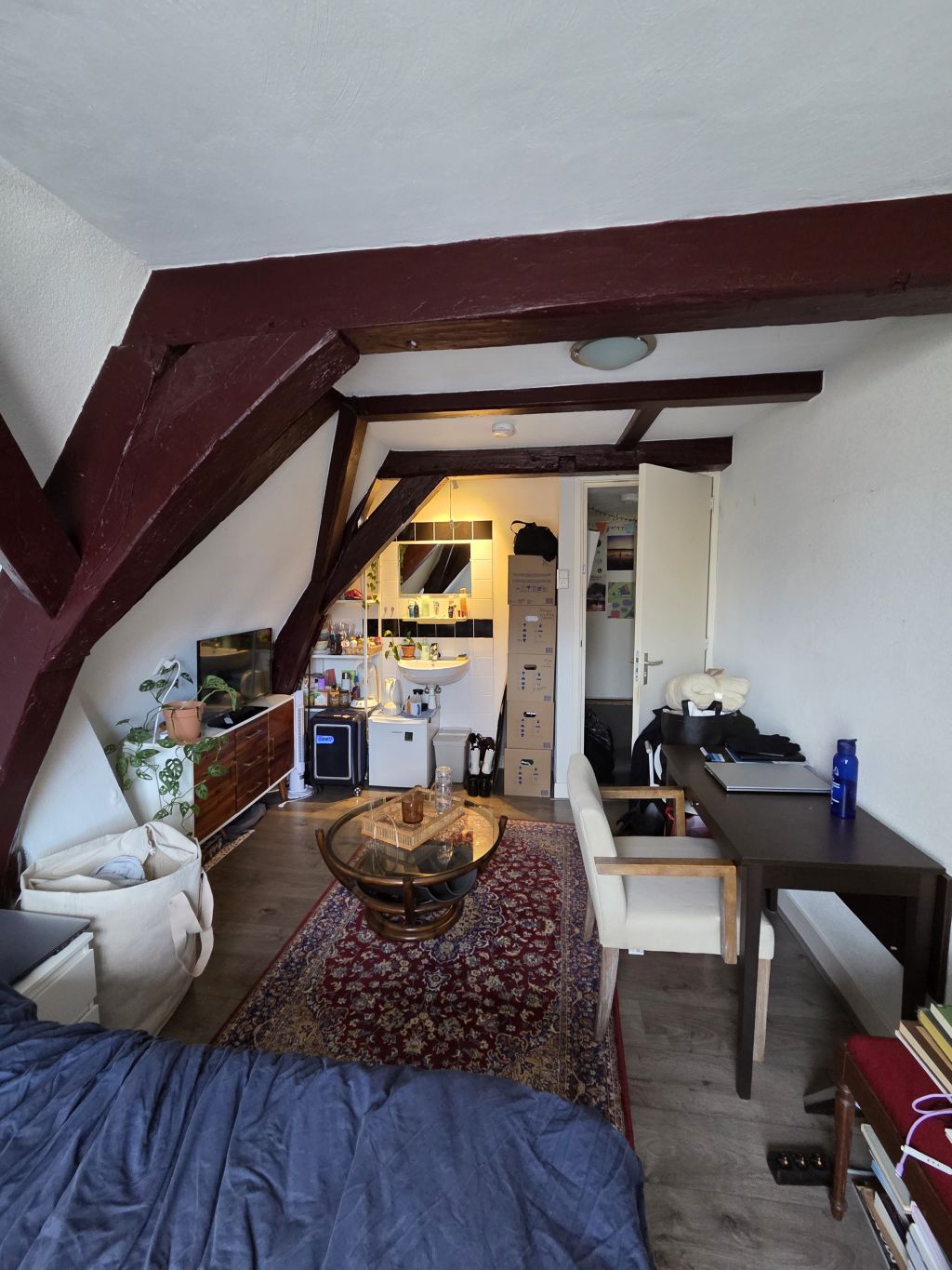 Leuke kamer midden in het centrum van Leiden. De kamer ligt op de 3e verdieping en is voorzien van laminaat. De keuken, douche en toilet deel je met 5 huisgenoten. De woning heeft een ruim dakterras die je met 13 huisgenoten deelt.