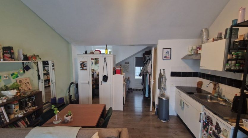 Zeer ruime kamer midden in het centrum van Leiden. De kamer ligt op de 1e verdieping en is voorzien van laminaat. Je hebt de beschikking over je eigen keuken, douche en toilet. De woning heeft een ruim dakterras die je met 13 huisgenoten deelt.